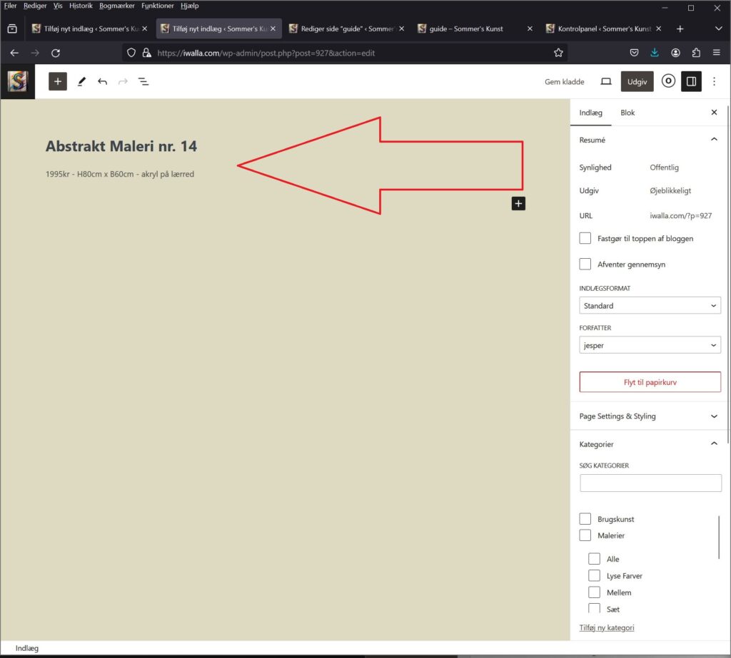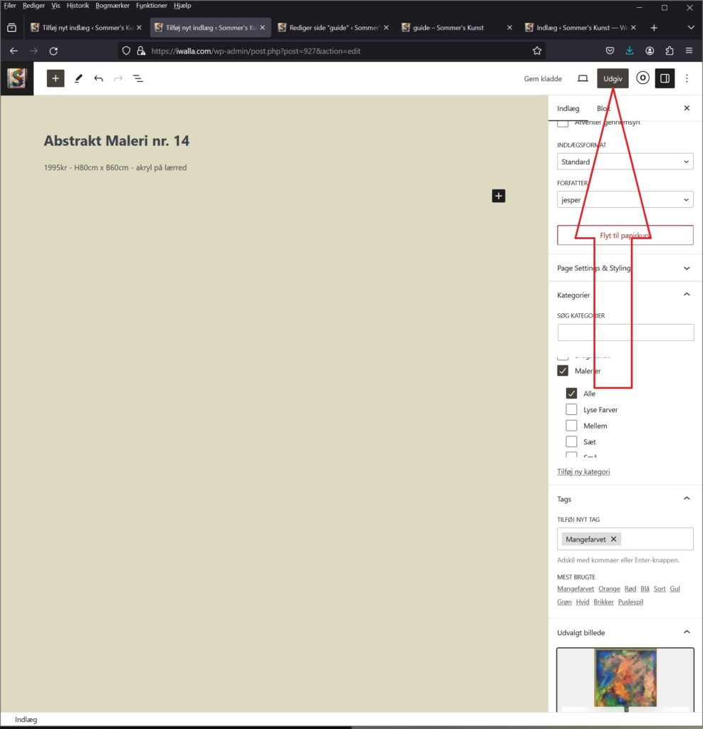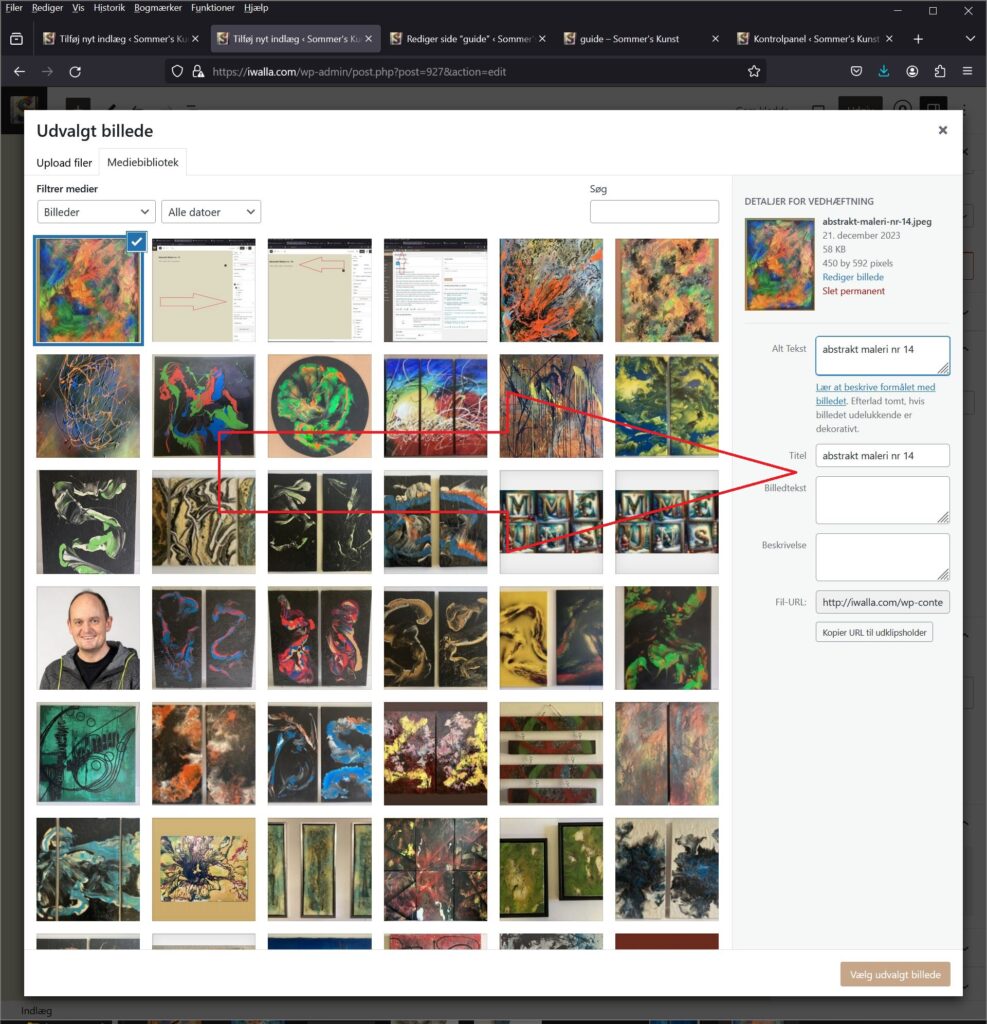 Det er vigtigt du udfyler ALT teksten, den skal være det samme som emne titlen, men du må gerne skrive en farve efter eks: abstrakt maleri nr 14 grøn.